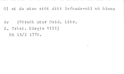 0! at du utan stöt ditt lefnads-mål må hinna //// Av (Försök utur Ovid. Libr. //// I. Trist. Elegia VIII) DA 13/2 1770.
