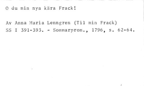 0 du min nya kära Frack! //// Av Anna Maria Lenngren (Til min Frack) //// SS I 391-393. - Sommarprom., 1796, s. 62-64.