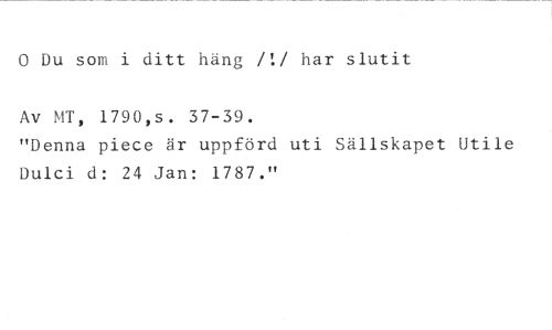 0 Du som i ditt häng /t/ har slutit //// Av MT, 1790,s. 37-39. //// "Denna piece är uppförd uti Sällskapet Utile Duici d: 24 Jan: 1787."