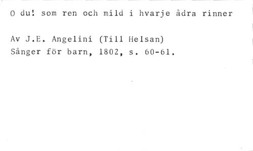 0 du! som ren och mild i hvarje ådra rinner //// Av J.E. Angelini (Till Helsan) Sånger för barn, 1802, s. 60-61.