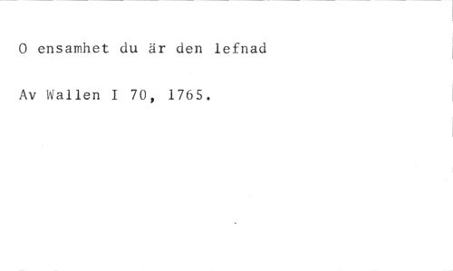 0 ensamhet du är den lefnad //// Av Wallen 1 70, 1765.