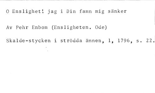 0 Enslighet! jag i Din famn mig sänker //// Av Pehr Enbom (Ensligheten. Ode) //// Skalde-stycken i strödda ämnen, 1, 1796, s. 22.