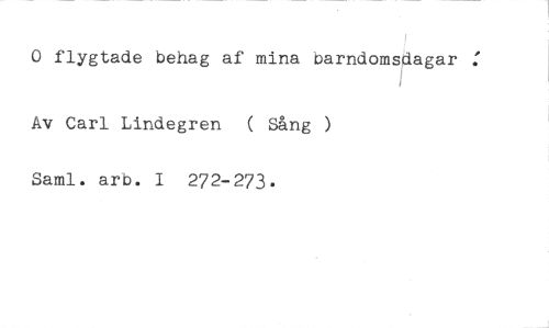 0 flygtade behag af mina barndomsdagar : //// Av Carl Lindegren ( Sång ) Saml. arb. I 272-273.