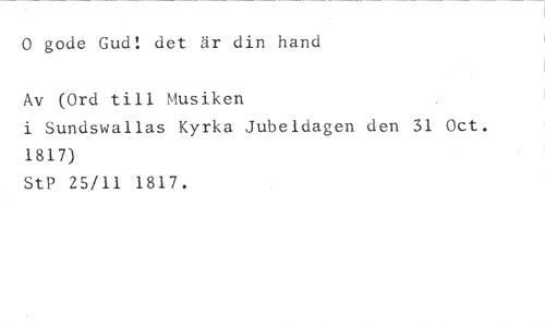 0 gode Gud! det är din hand //// Av (Ord till Musiken //// i Sundswallas Kyrka Jubeldagen den 31 Oct. 1817) //// StP 25/11 1817.