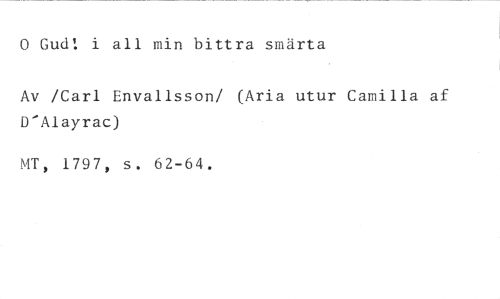 0 Gud! i all min bittra smärta //// Av /Carl Envallsson/ (Aria utur Camilla af D'Alayrac) //// ATT, 1797, s. 62-64.