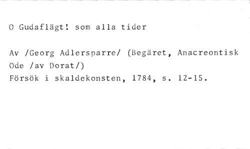 0 Gudaflägt! som alla tider //// Av /Georg Adlersparre/ (Begäret, Anacreontisk Ode /av Dorati) //// Försök i skaldekonsten, 1784, s. 12-15.