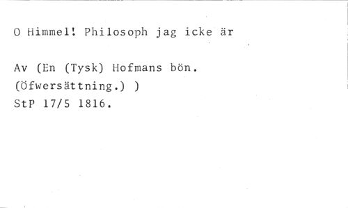 0 Himmel; Philosoph jag icke är //// Av (En (Tysk) Hofmans bön. (Öfwersättning.) ) StP 17/5 1816.