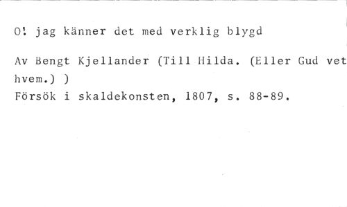 0: jag känner det med verklig blygd //// Av Bengt Kjellander (Till Hilda. (Eller Gud vet hvem.) ) //// Försök i skaldekonsten, 1807, s. 88-89.