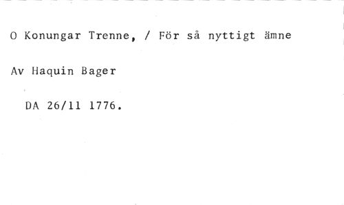 0 Konungar Trenne, / För så nyttigt ämne Av Haquin Bager //// DA 26/11 1776.