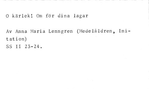 0 kärlek! Om för dina lagar //// Av Anna Maria Lenngren (Medelåldren, Imitation) //// SS II 23-24.