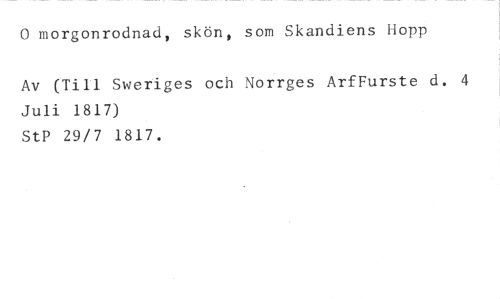 0 morgonrodnad, skön, som Skandiens Hopp //// Av (Till Sweriges och Norrges ArfFurste d. 4 Juli 1817) //// StP 29/7 1817.