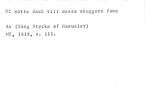 0! måtte dock till dessa skuggors famn //// Av (Sång Stycke af Haeusler) MT, 1818, s. 111.