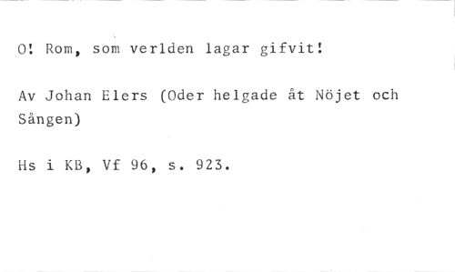 0! Rom, som verlden lagar gifvit! //// Av Johan Elers (Oder helgade åt Nöjet och Sången) //// ils i KB, Vf 96, s. 923.
