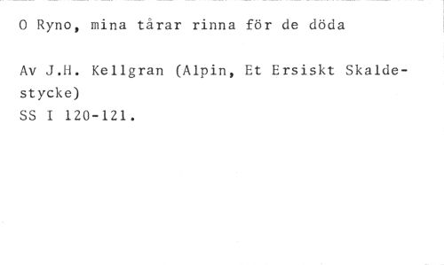 0 Ryno, mina tårar rinna för de döda //// Av J.H. Kellgran (Alpin, Et Ersiskt Skaldestycke) //// SS I 120-121.