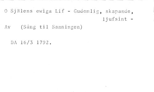 0 Själens ewiga Lif - Gudomlig, skapande, //// ljufsint - //// Av (Sång til Sanningen) //// DA 16/3 1792.