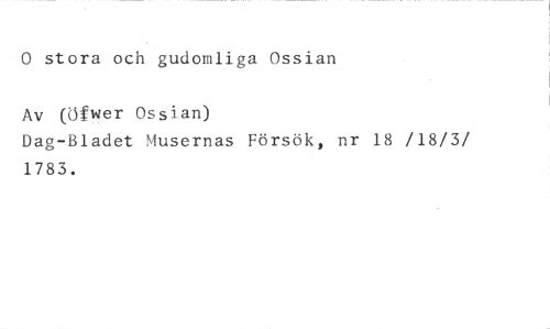 0 stora och gudomliga Ossian //// Av (öfwer Ossian) //// Dag-Bladet Musernas Försök, nr 18 /18/3/ 1783.
