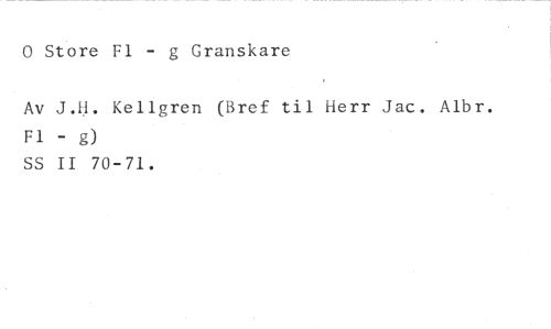 0 Store Fl - g Granskare //// Av J.H. Kellgren (Bref til Herr Jac. Albr. Fl - g) //// SS II 70-71.