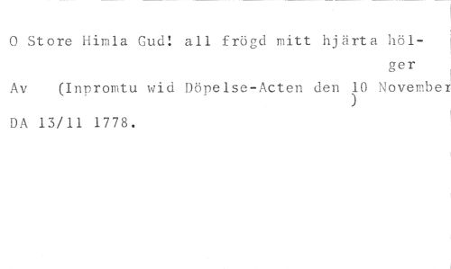 0 Store Himla Gud! all frögd mitt hjärta höl- //// ger //// Av (Il romtu wid Döpelse-Acten den 10 November, //// DA 13/11 1778.