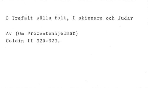 0 Trefalt sälla folk, I skinnare och Judar //// Av (Om Procentenhjelmar) Coldin II 320-323.