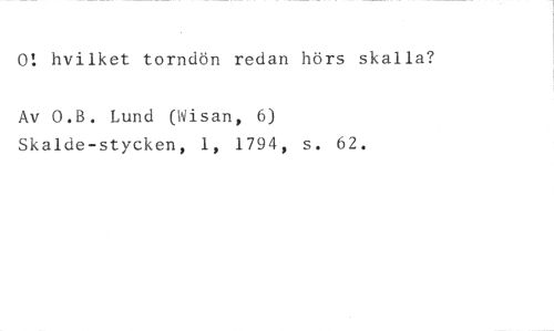 hvilket torndön redan hörs skalla? //// Av O.B. Lund (Wisan, 6) //// Skalde-stycken, 1, 1794, s. 62.