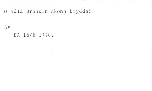 0 ädla Bränwin sköna krydda: //// Av //// DA 16/8 1770.