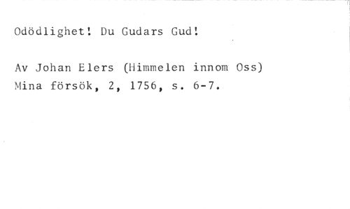 Odödlighet: Du Gudars Gud! //// Av Johan Elers (Himmelen innom Oss) Mina försök, 2, 1756, s. 6-7.
