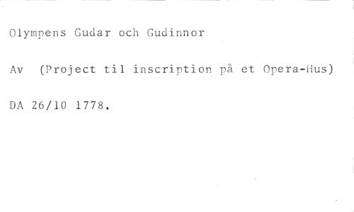 Olympens Gudar och Gudinnor //// Av (Project til inscription på et Opera-Hus) DA 26/10 1778.