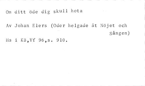 Om ditt öde dig skull hota //// Av Johan Elers (Oder helgade åt Nöjet och //// Sången) //// ds i KB,Vf 96,s. 910.