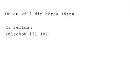 Om du vill din hörda lätta //// Av Bellman. //// Völschow III 102.