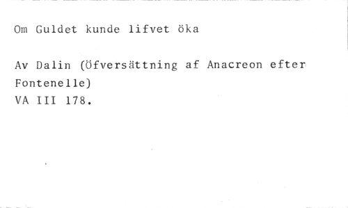 Om Guldet kunde lifvet öka //// Av Dalin (Öfversättning af Anacreon efter Fontenelle) //// VA III 178.