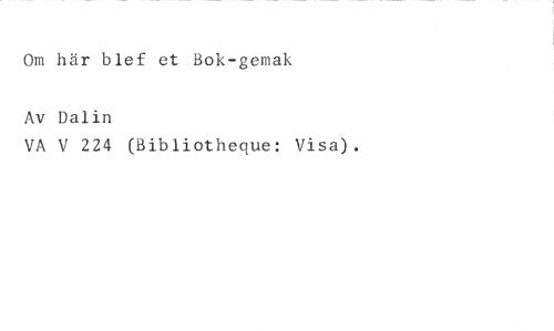 Om här blef et Bok-gemak //// Av Dalin //// VA V 224 (Bibliotheque: Visa).