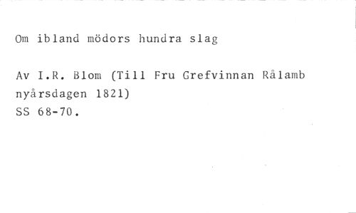 Om ibland mödors hundra slag //// Av I.R. Blom (Till Fru Grefvinnan Rålamb nyårsdagen 1821) //// SS 68-70.