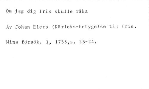 Om jag dig Iris skulle råka //// Av Johan Elers (Kärleks-betygelse til Iris. Mina försök. 1, 1755,s. 23-24.