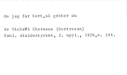 Om jag far bort,så gråter du //// Av Michael Choraeus (Kortresan) //// Saml. skaldestycken, 2. uppl., 1826,s. 144.