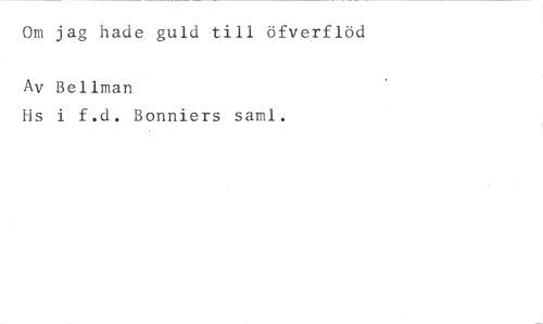 Om jag hade guld till öfverflöd //// Av Bellman //// pis i f.d. Bonniers saml.