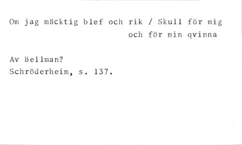 Om jag mäcktig blef och rik / Skull för mig //// och för min (tvinna //// Av Bellman? //// Schröderheim, s. 137.