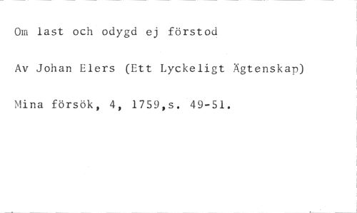 Om last och odygd ej förstod //// Av Johan Elers (Ett Lyckeligt Ägtenskap) //// Mina försök, 4, 1759,s. 49-51.