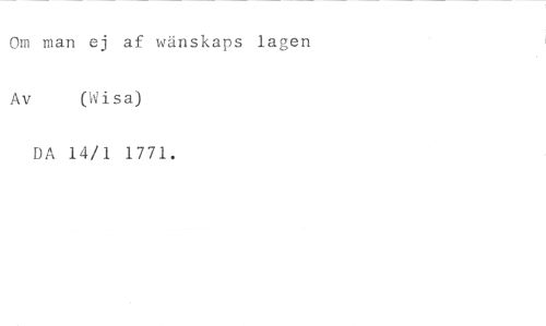 Om man ej af wänskaps lagen //// Av (Wisa) //// DA 14/1 1771.