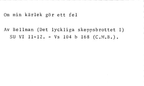 Om min kärlek gör ett fel //// Av Bellman (Det lyckliga skeppsbrottet I) SU VI 11-12. - Vs 104 b 168 (C.M.B.).