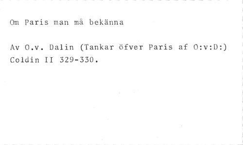 Om Paris man mä bekänna //// Av 0.v. Dalin (Tankar öfver Paris af O:v:D:) Coldin II 329-330.