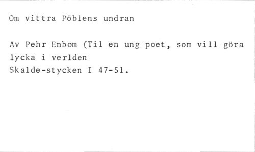 Om vittra Pöblens undran //// Av Pehr Enbom (Til en ung poet, som vill göra lycka i verlden //// Skalde-stycken I 47-51.
