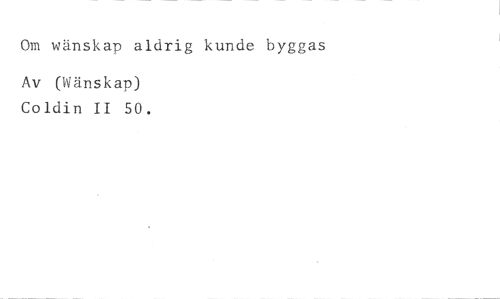 Om wänskap aldrig kunde byggas //// Av (Wänskap) Coldin II 50.