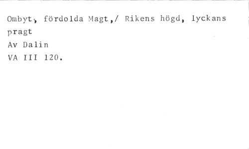 Ombyt,, fördolda 'lagt,/ Rikens högd, lyckans pragt //// Av Dalin //// VA III 120.