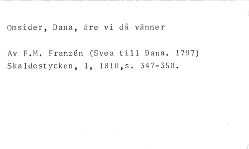 Omsider, Dana, äre vi då vänner //// Av F.M. Franzén (Svea till Dana. 1797) Skaldestycken, 1, 1810,s. 347-350.