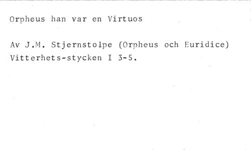 Orpheus han var en Virtuos //// Av J.M. Stjernstolpe (Orpheus och Euridice) Vitterhets-stycken I 3-5.