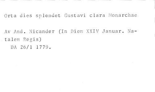 Orta dies splendet Gustavi clara Monarchae //// Av And. Nicander (In Diem XXIV Januar. Natalem Regis) //// DA 26/1 1779.