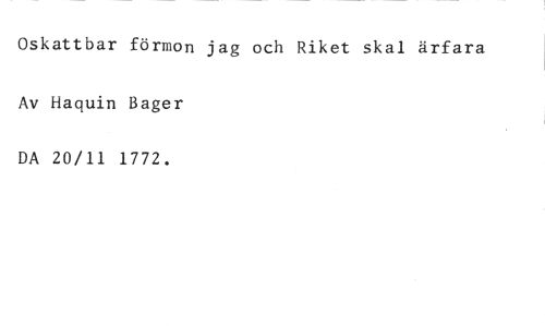 Oskattbar förmon jag och Riket skal ärfara //// Av Haquin Bager DA 20/11 1772.