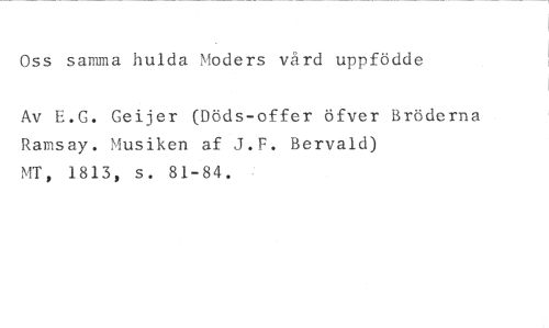 Oss samma hulda Moders värd uppfödde //// Av E.G. Geijer (Döds-offer öfver Bröderna Ramsay. Musiken af J.F. Bervald) MT, 1813, s. 81-84.