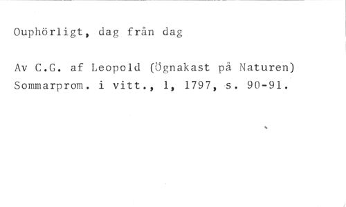 Ouphörligt, dag från dag //// Av C.G. af Leopold (Ögnakast på Naturen) Sommarprom. i vitt., 1, 1797, s. 90-91.