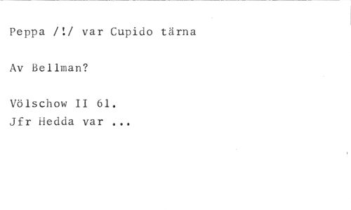 Peppa R/ var Cupido tärna //// Av Bellman? //// Völschow II 61. Jfr Hedda var ...